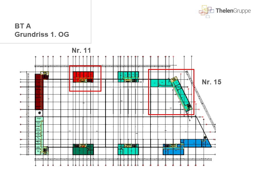 Der Standort definiert sich durch seine zentrale Lage in direkter Nähe zum Flughafen Köln-Bonn, zu den Autobahnen A59, A4 und A3 sowie mit gleichzeitig optimaler Anbindung an den ÖPNV und die Nahversorgungs-Infrastruktur Die Entwicklungsfläche mit ca. 7.700 m² Neubau-Hallenfläche wird nach Mieterwünschen gebaut.. Die Büros im Büro-/Verwaltungsgebäude verfügen über Teppichböden, abgehängte Decken, hochwertige Sanitärausstattungen, außenliegenden Sonnenschutz, weiß gestrichene Raufasertapeten, teilweise Teeküchen, Beleuchtung, die BAP gerecht ist, Kunststoff-/Aluminium Fenster mit Isolierverglasung und Kabelkanäle (Fensterbankkanäle und/ oder Fußbodenkanäle). Mietbereich Halle Büro/Sozial BT A 11 EG ca. 809,70 m² ca. 99,37 m² BT A 11 1. OG ca. 199,00 m² Mietbereich Büro/Sozial BT C 31 EG rechts ca. 121,00 m² BT C 31 EG links ca. 133,47 m² BT C 31-33 1. OG ca. 1.020,97 m² BT C 31 2. OG ca. 419,48 m² BT C 33 2. OG ca. 629,00 m² Mietbereich Halle / Büro/Sozial BT B Neubau/ Entwicklg ca. 7.700,00 m²